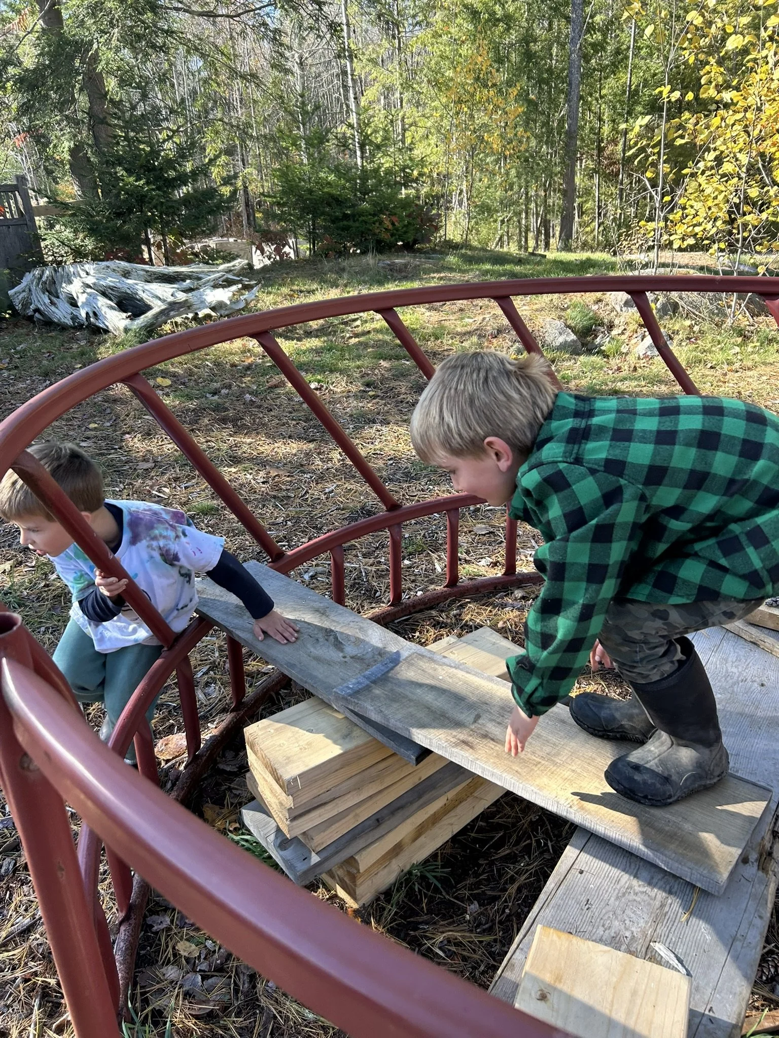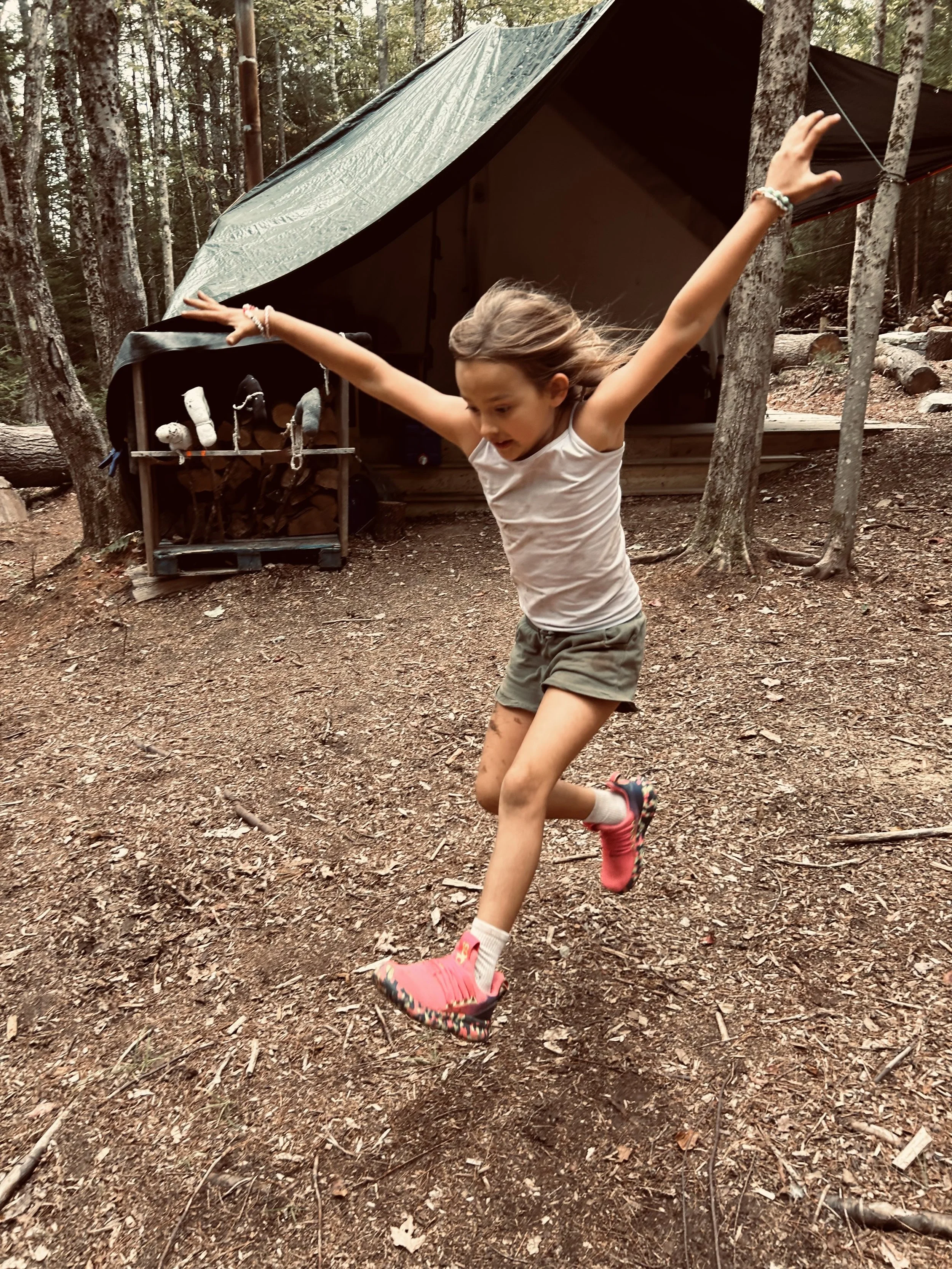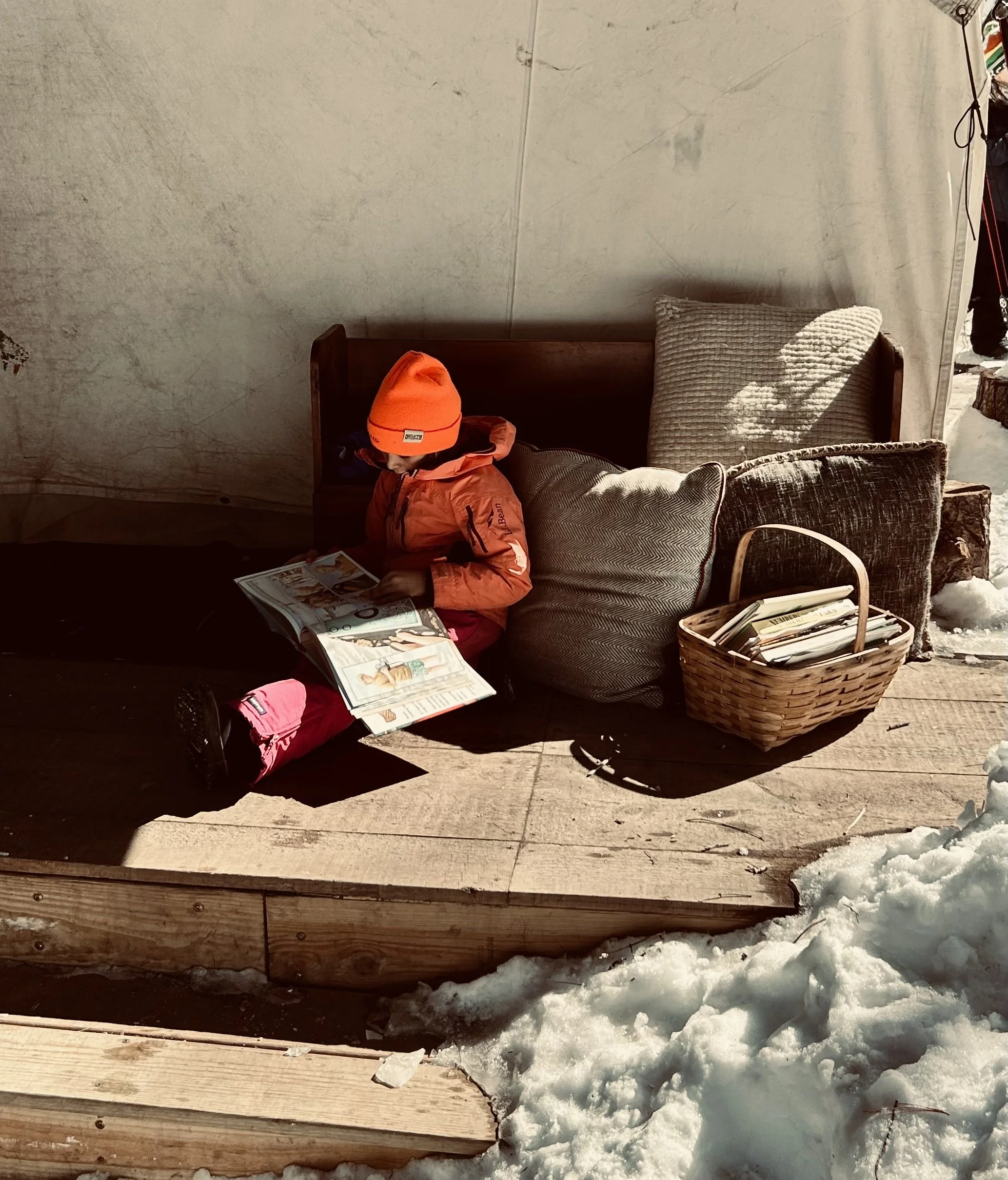 The Forest Space holds so many wonders for the children. It houses our beautiful tent with a woodstove for the colder months. The children worked to create the firepit area, stack wood for the winter, clear the space of branches, etc. A favorite spot for all kids is the dirt kitchen where imaginary play abounds. Surrounded by the crooked pines we named the school after, this space perfectly embodies the spirit of our program in fostering experiential learning. The outdoor and indoors spaces allow for perfect areas of learning.